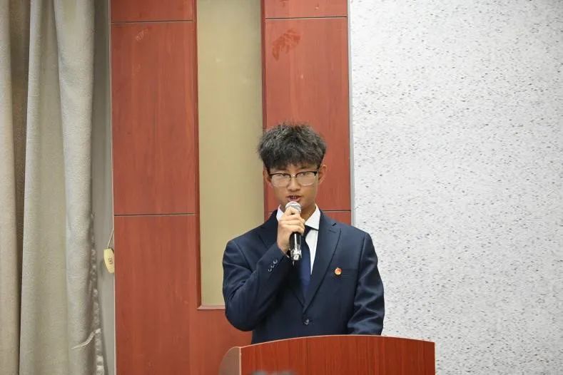 2024级材料科学与工程专业5班班长陈家栩同学作为“青马班”新生代表上台发言,表达了对未来学习的决心和期待。随后全体学员面向团旗重温入团誓词,用铿锵有力的话语诠释着“青马”人的赤诚之心和青春之志。