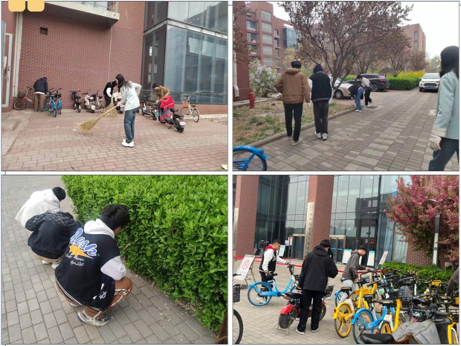 在校园清扫活动中,同学们戴上手套,手持垃圾袋,热情满满地进行了一场清扫行动。他们以小组为单位,对1946伟德国际源自英国的卫生责任区进行清扫,有的负责捡拾地上的烟头和纸屑,有的则深入绿化带,捡拾隐蔽处的垃圾,还有的同学摆齐共享单车。同学们分工合作、不辞辛劳,只为营造一个优美的校园环境。