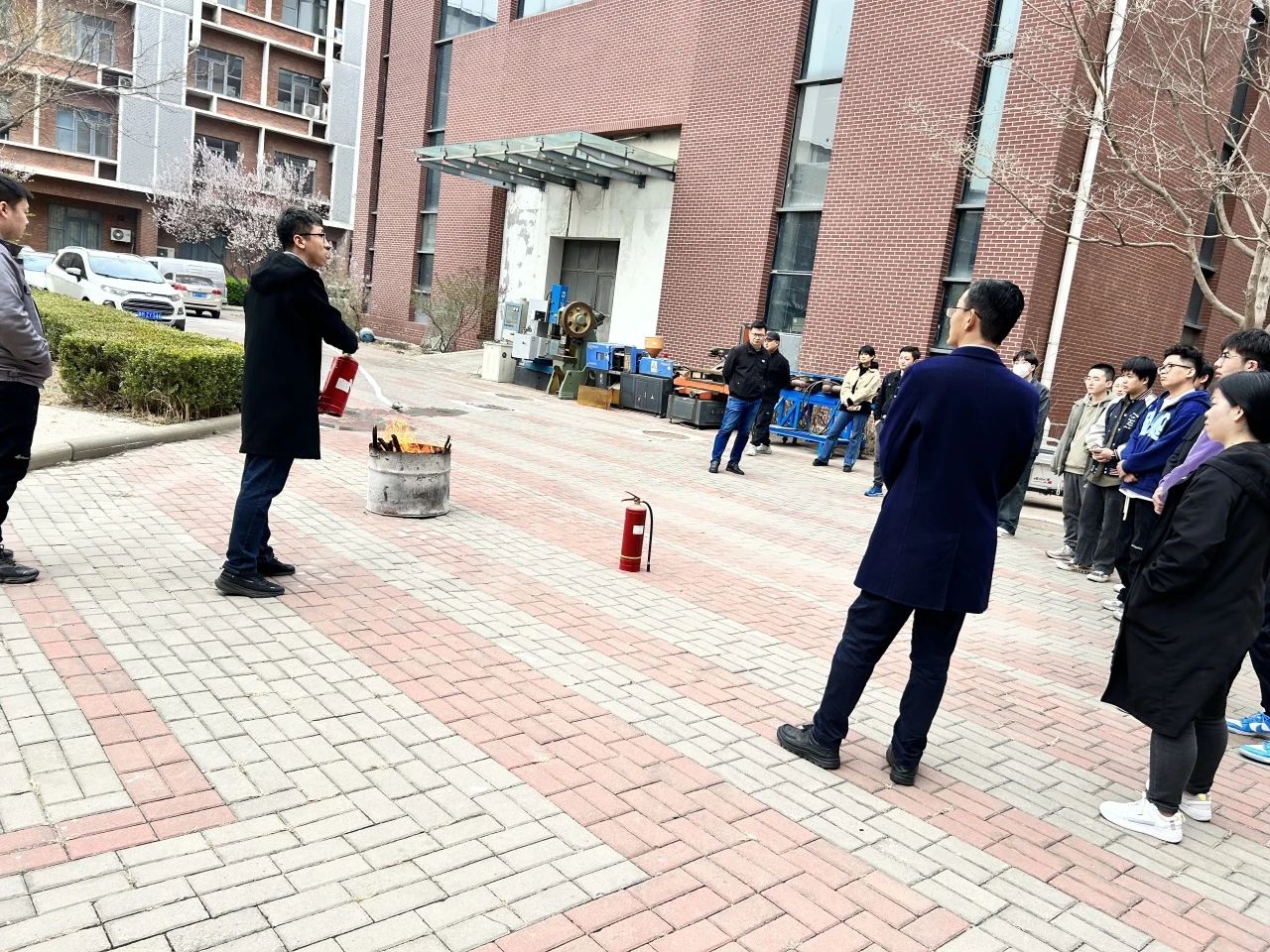 最后,保卫处老师为同学们开展消防知识培训并进行了消防演练,寇林峰老师对干粉灭火器的使用安全距离、火焰对准位置、使用角度、注意风口位置等安全使用细节进行了详细说明,并亲自进行实操演练模拟灭火过程,同学们也都尝试使用了灭火器,对灭火器的操作有了亲身体验。副院长张宏敏代表学院对保卫处老师的悉心指导表示了感谢,并对全体研究生安全联络员提出更高的期望,希望大家能够严格遵守实验室规范制度,时刻督促并提醒课题组每位同学做好自我保护,在科学实验中保证安全。
