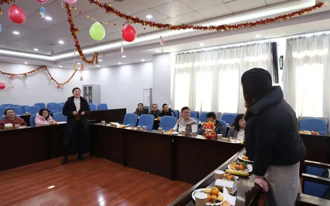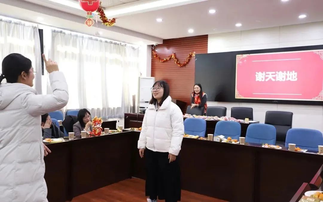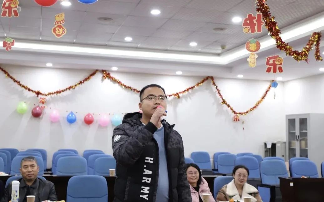 总结会后,学院举行迎新春联欢会。全体教职工欢聚一堂,回顾2023、展望2024,喜迎新春、共话发展,各系教师以精彩纷呈的表演为大家呈现了一场文艺盛宴。精心设计的游戏环节让大家充分参与、欢笑不断。“击鼓传花”“听歌识曲”“你划我猜”,每一轮游戏都点燃了参与者的激情,营造了热烈欢快的氛围。