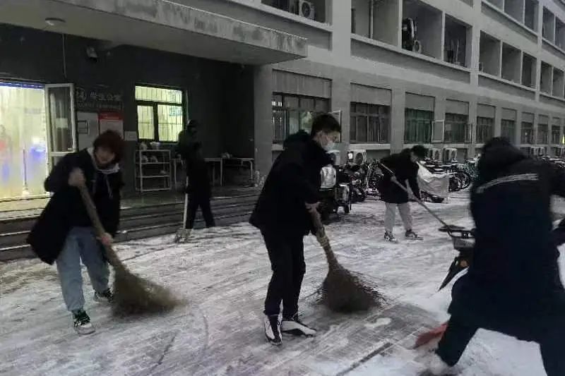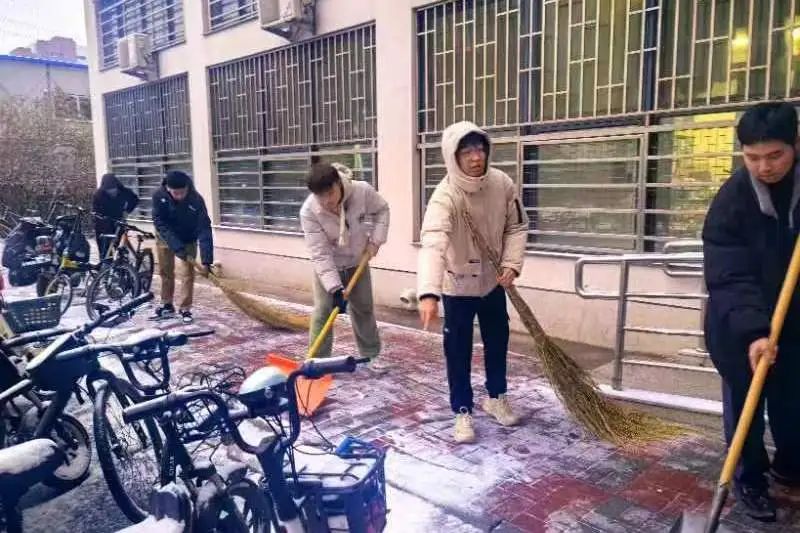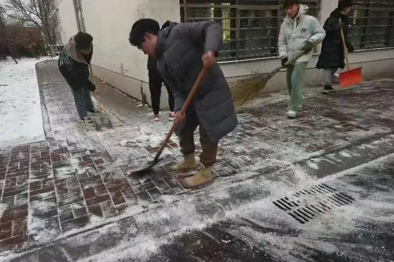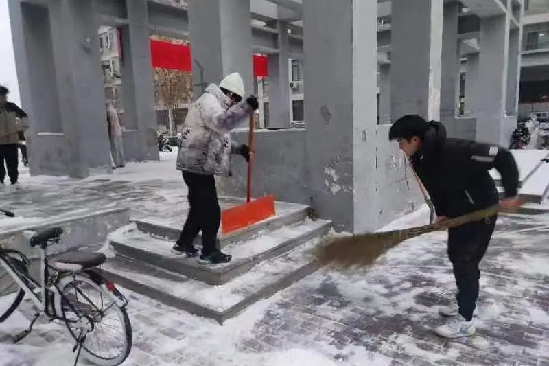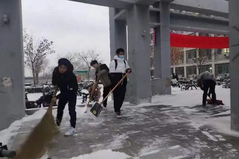 凛冽刺骨的寒风挡不住除雪的热情,学子们热情劳动,成为了校园中一道靓丽的风景线。