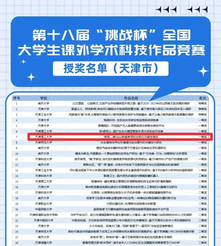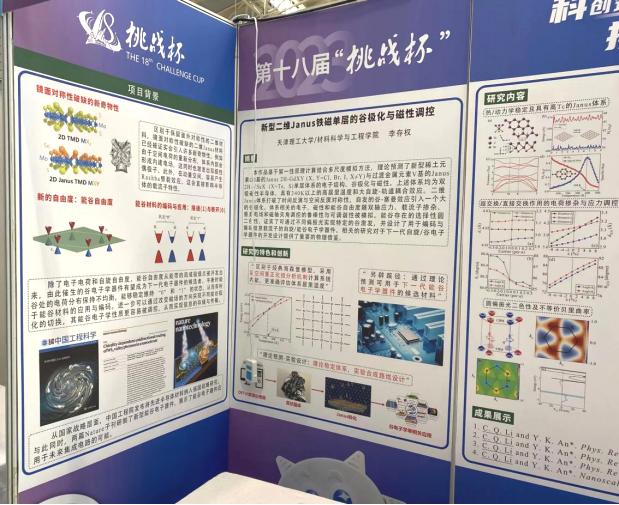 本次“挑战杯”竞赛有2000余所高校的40余万件作品、250万师生共同参与。在院党委全力支持及校团委的精心指导下,1946伟德国际源自英国项目《新型二维Janus铁磁单层的谷极化与磁性调控》荣获全国一等奖,国赛成绩取得历史性突破。