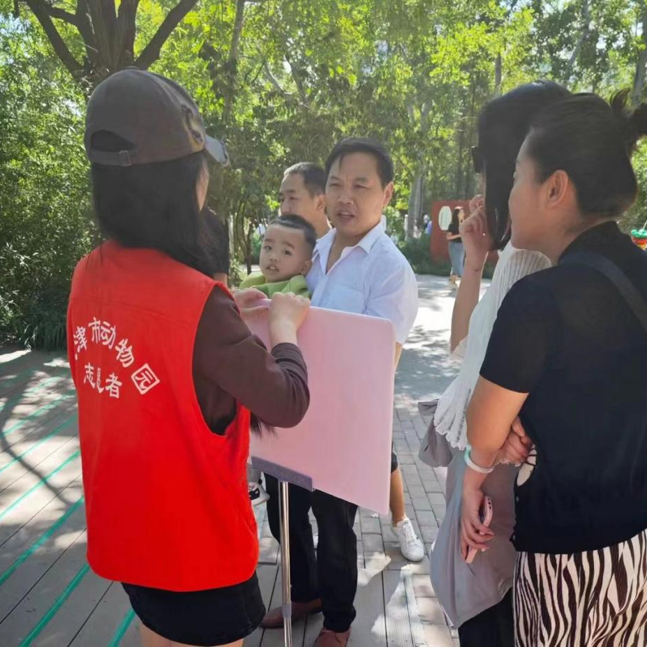 9月30日到10月2日,在为期三天的天津动物园公益活动中,志愿者们积极为游客提供各种咨询服务,以饱满的精神状态坚守在工作岗位。主动上前维护秩序,引导游客们有序进馆参观、在园区内劝阻游客擅自投喂动物、引导游客文明旅游。活动当天,在动物园的每个角落都能看到志愿者们忙碌的身影,他们用行动守护动物安全,为游客提供热情的服务。