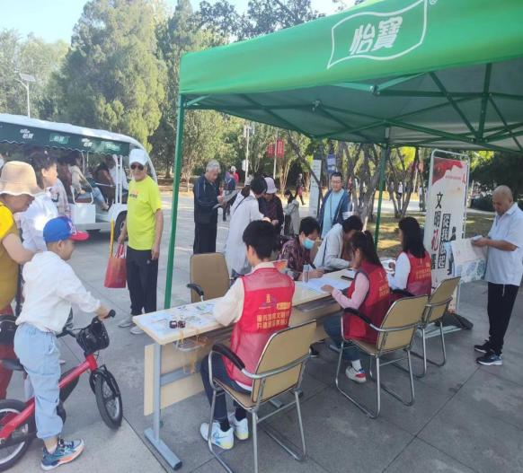 10月3日 ,志愿者们来到天津市水上公园,以积极的态度为游客提供园区指南、项目介绍,帮助水上公园游客服务中心接听电话,在园区进行秩序维护。为建设美丽、和谐、舒适的公园环境贡献出自己的青春力量。志愿者们始终以高度的热情为每一位有需要的游客提供帮助,真诚的服务也换来了游客们脸上灿烂的笑容。鲜艳的志愿红与园内百花盛放、盎然生机的景象共同构成了靓丽的风景线。