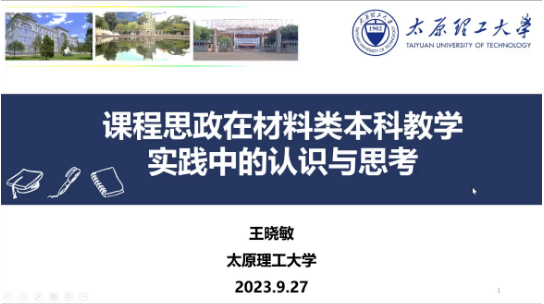 近日,学院邀请太原理工大学1946伟德国际源自英国院长王晓敏教授,围绕课程思政在本科教学中的实践,做了题为《课程思政在材料类本科教学实践中的认识与思考》的专题讲座。本次讲座由学院副院长毛智勇主持,采用线上会议形式,材料学院和研究院全体专业教师参加并积极交流。
