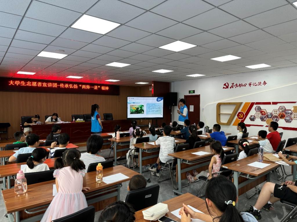 为深入学习宣传贯彻习近平新时代中国特色社会主义思想和党的二十大精神,落实“强国复兴有我”群众性主题宣传教育活动相关要求,引导广大青年学生大力弘扬“两弹一星”精神。8月7日,伟德国际1946源于英国 “两弹一星”精神宣讲志愿团来到了河东区鲁山道街道丹荔园党群服务中心,为小朋友们开展了两弹一星的主题宣讲。