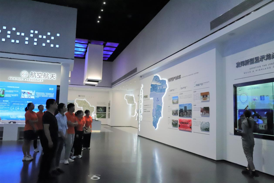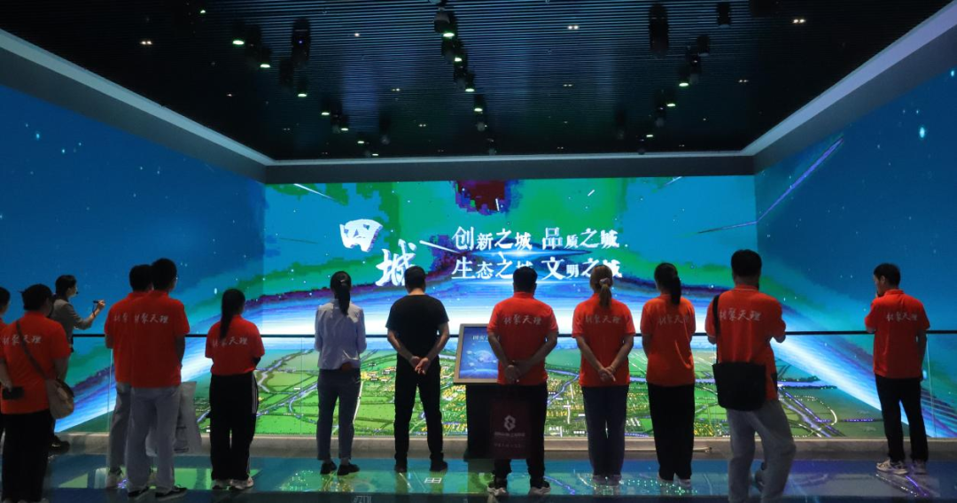 固安城市规划馆是一座世博级规划馆,其以“多宝盒”为灵感构思,借此编织未来城市之光。走进规划馆,映入眼帘的是习近平总书记对京津冀一体化的殷切期盼,“京津冀如同一朵花上的花瓣,瓣瓣不同,却瓣瓣同心”。在讲解员引领下,实践团通过参观规划馆展台、观看视频影片等,对固安城市规划全貌有了系统性了解。从固安的区位交通优势、产业发展现状和园区功能布局等方面着眼,团员们沉浸式感悟固安蒸蒸日上的发展态势,感受城市变迁的日新月异。回望历史的璀璨,立足当下的发展,我们能够感受到未来这座城市的无可丈量。这样一座“北京天安门正南50公里”处的城市规划馆,聚集了全球城市发展的智慧与力量,凝聚了一方人民的自豪与幸福,记录了一座城市的梦想与实践。