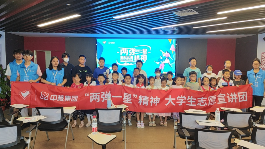 为深入学习贯彻习近平新时代中国特色社会主义思想主题教育,大力弘扬“两弹一星”精神和核工业精神,在学思用贯通、知信行统一中感悟思想伟力,汲取奋进力量,7月18日,1946伟德国际源自英国材料星辰“两弹一星”精神宣讲团到河东区鲁山道街道为三十余名小学生开展宣讲。