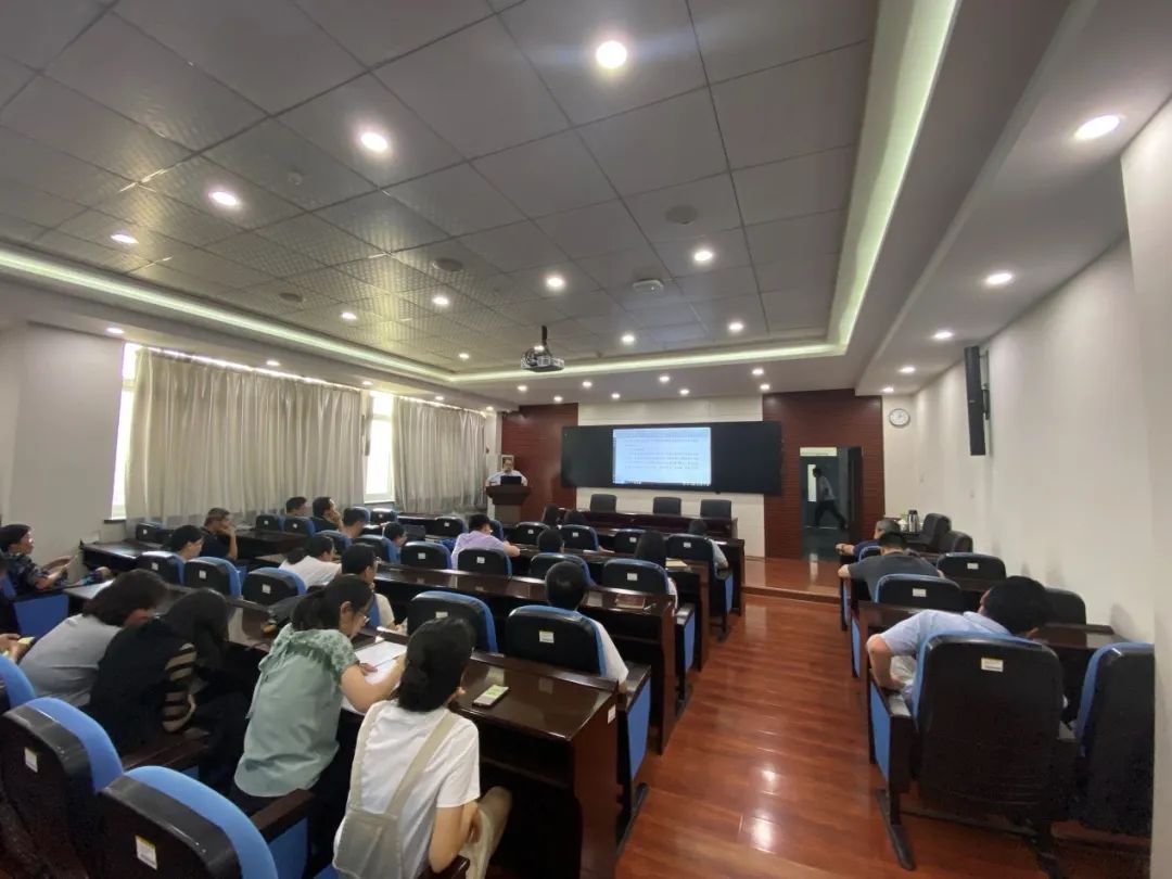 随后,学院课程思政建设领导小组成员傅斌副教授向参会教师分享了其在课程思政建设方面的工作经验,他围绕课程思政案例库建设的重要性、课程思政案例模板和其课程中的具体思政案例三个方面向各位老师进行了详细讲解。傅斌老师多年来一直研究课程思政,发表过多篇相关的教改论文,建立过优秀的课程思政案例。