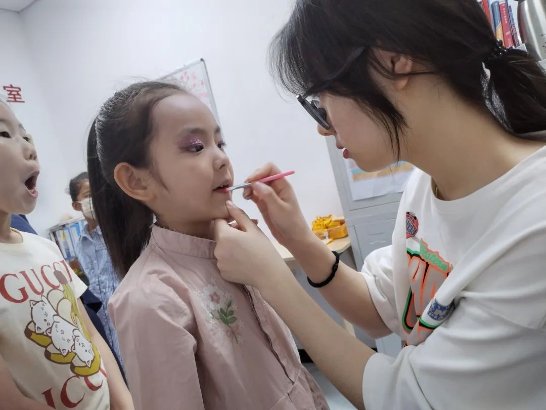 在新芽公益课堂带领孩子们彩排节目,参加公益演出。