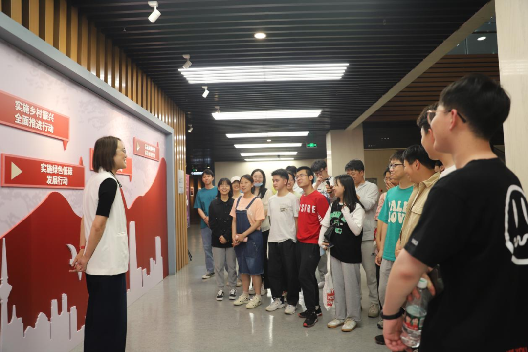 在天津推进“十项行动”展示墙前,主题教育校级导学团成员、马克思主义学院郭霞老师从党的二十大报告出发,结合美丽中国建设,深入浅出地为同学们介绍了“绿色低碳发展行动”“高品质生活创造行动”的理论逻辑和现实意义,帮助同学们进一步树立投身“十项行动”火热实践的坚定信念。