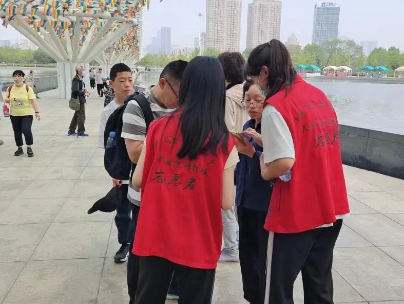 迎着朝阳,志愿者们来到了天津市水上公园,引导游客文明有序排队并协助工作人员处理各项事务。志愿者们感受到劳动与奉献带来的快乐。