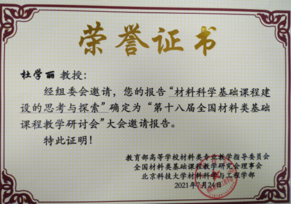 在近29年的教学工作中,始终坚持以生为本、教学相长的教书育人理念,先后承担了10门左右的专业课程教学工作,近5年主要承担了《材料科学基础》《冶金原理》《陶瓷材料》《工程伦理》《科技英语》《习近平关于科技创新的重要论述》等本科/研究生课程。多年的教学实践过程中与时俱进、积极探索教育教学改革,主持完成多项校级教改项目,尤其是对于《材料科学基础》课程,倾注了很多的精力进行教学研究,从试题库到一流课程建设,课程建设成果受邀在“第十八届全国材料类基础课程教学研讨会”进行汇报交流。