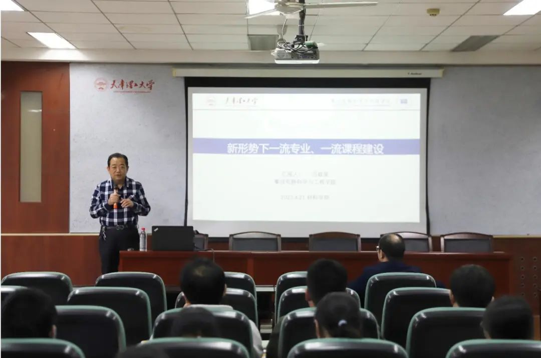 吕联荣老师深耕教学,获得多项天津市教学成果奖,并出版多部教材,是国家级一流专业建设点、天津市一流建设课程负责人,带领多个专业通过工程教育认证,同时还有丰富指导国家级学科竞赛经验。这次报告吕联荣老师从高等教育新形势、一流专业建设、一流课程建设、个人与团队这四个方面,并结合自己多年的教学和管理经验,给大家分享了一些经验和体会。老师们对吕老师讲的一流专业的建设思路、建设目标、建设抓手、建设路径很有感触,对吕老师讲的一流课程的激发学生学习的内驱力和提升课堂效果收益匪浅。