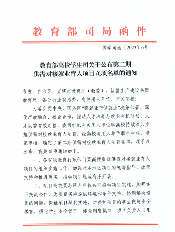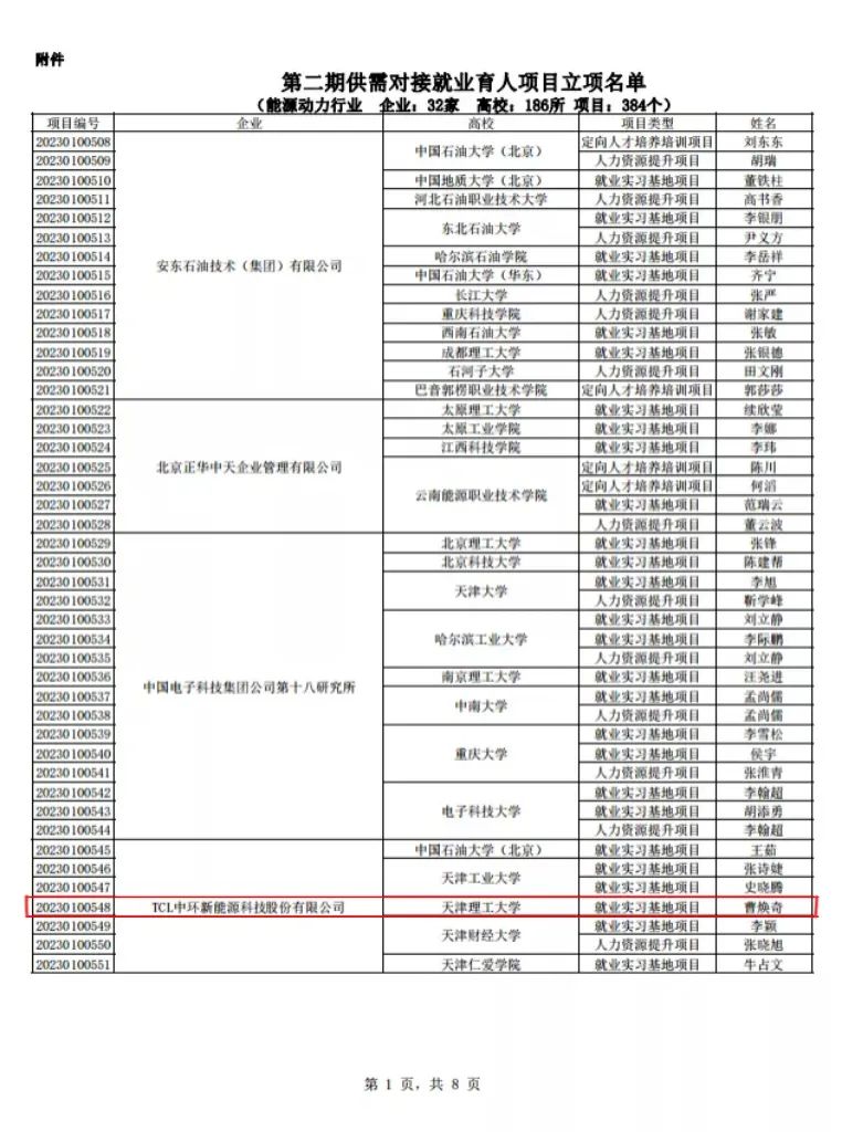 近日,教育部高校学生司公布第二期供需对接就业育人项目立项名单。根据《教育部高校学生司关于公布第二期供需对接就业育人项目立项名单的通知》,我院与TCL中环新能源科技股份有限公司对接的就业实习基地项目获批立项。