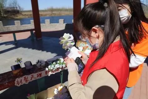 舞台外的湖心亭,“美丽天津 智净未来”环保科普宣传活动现场也吸引了大量游客。志愿者们用废弃纸张折成风车,吸引游客涂色参与其中,推广变废为宝的环保理念;“碳限家”互动答题区参与环保答题的游客也是络绎不绝,有年龄大的老者也有活力蓬勃的年轻人,大家认真思考着一个个环保相关的问题,“金山银山是什么?”抢答异口同声“绿水青山就是金山银山!”掌声响起,欢笑声不断,答题正确率高者还获得了由实践团的同学们亲手制作的环保礼物;除此之外,志愿者还精心设计了“送你一个春天”“幸运上上签”等活动,与梨花节主题深度契合,烘托活动氛围,引领绿色生活新风尚。