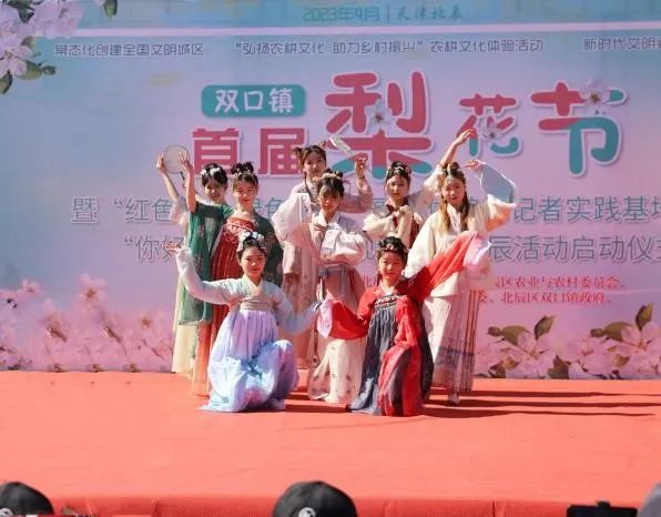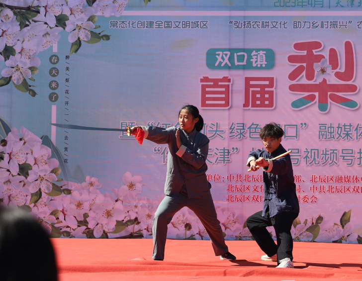 活动现场春风拂面,梨花烂漫,花香四溢,梨花节开幕式上,材子材女的优美的汉服秀和武术表演刚柔并济,作为开场节目,引起台下观众连连称赞。
