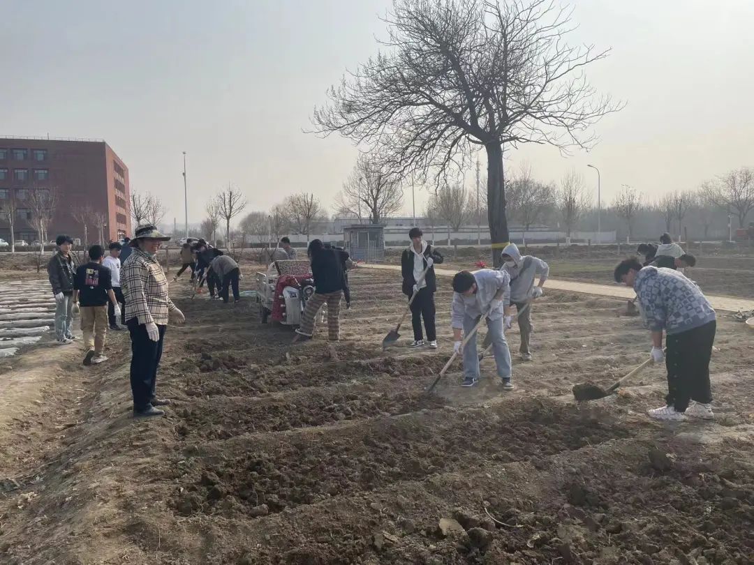 在春耕老师的讲解和指导下,同学们井然有序、勠力同心。虽对耕作方法不熟悉,但依旧卖力劳作。大家分工协作,有的同学拿起铁锹,翻地、除草,有的同学拾捡周围垃圾。春耕老师不停鼓舞同学们,大家干劲十足,深刻感悟劳动的快乐。在一片欢声笑语中,结束了春耕的工作。