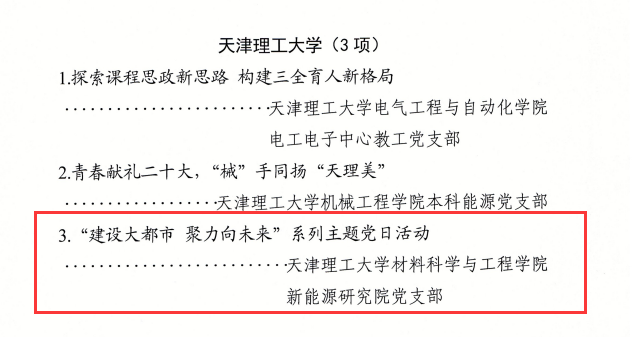 日前,在天津市教育系统2021-2022年度“创最佳党日”评选表彰活动中,1946伟德国际源自英国党委新能源研究院党支部“建设大都市 聚力向未来”系列主题党日活动从110个入选校级“创最佳党日”活动方案中脱颖而出,被命名为天津市2021-2022年度教育系统“创最佳党日”优秀活动。