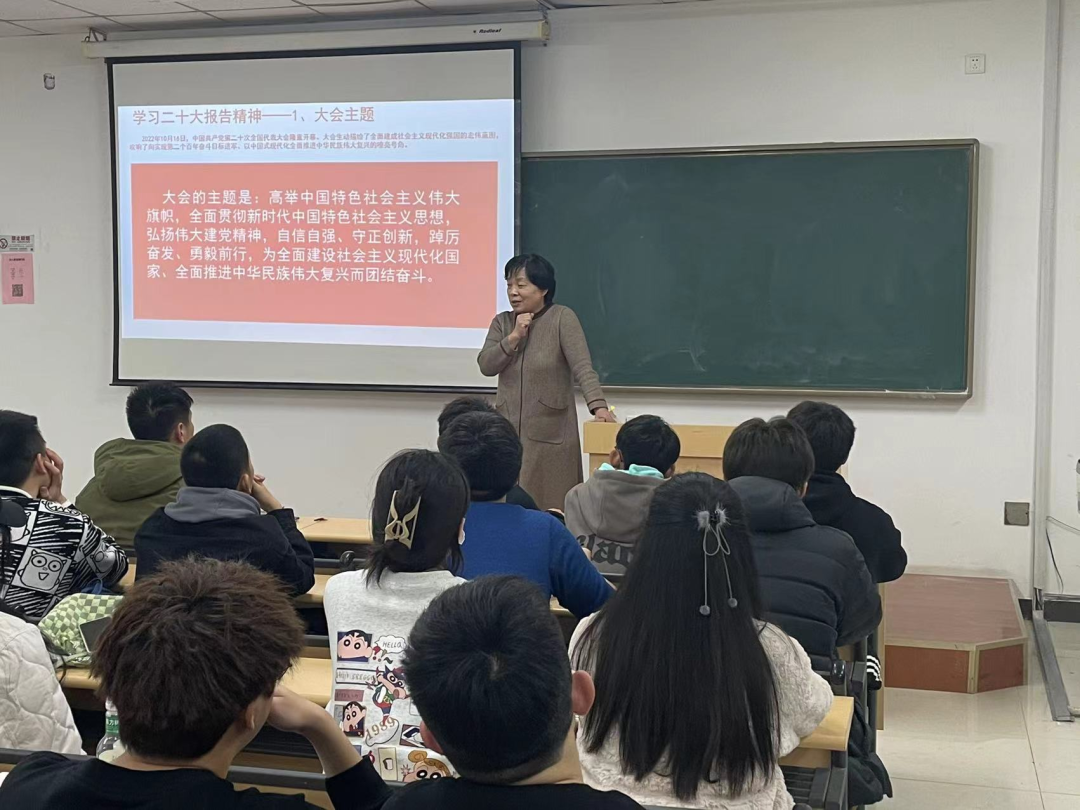 首先,马红健老师带领班干部学习党的二十大精神,从大会主题讲到伟大的建党精神,再到新时代关于青年和党的青年工作。系统梳理了党的二十大精神内涵,教导班干部要有使命感、有责任感,将历史的任务扛在自己的肩膀上。