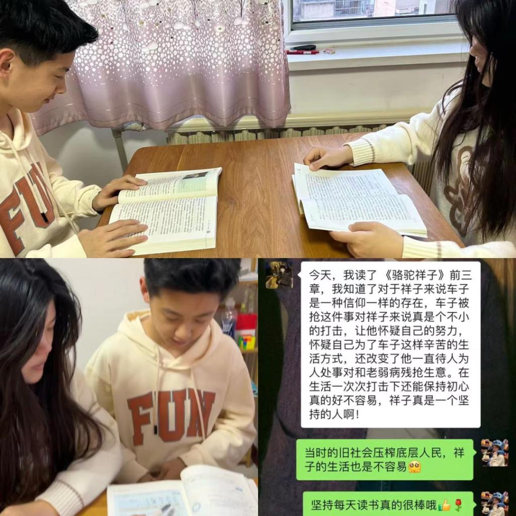 信息化时代发展迅速,阅读可以让心灵放松得到慰藉,阅读也应成为一束光照进孩子们的心里。我们选择了共同阅读《骆驼祥子》这本书,每天制定打卡计划,交流阅读感悟,坚持二十一天养成爱读书的好习惯。平时也会辅导小朋友一些功课上的问题。