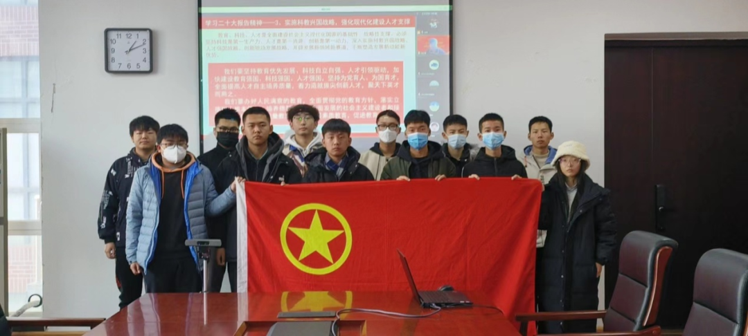 马红健老师首先带领同学们学习回顾了党的二十大精神,为同学们全面解读了党的二十大报告中提出的新思想、新要求,随后为同学们讲解了中国共产党与共青团组织的有关知识以及如何开展学生工作,当好学生干部。马老师嘱托同学们要实干担当尽显奉献精神,切勿沾染官僚作风,要善做青年友,不做青年“官”,在做好学生工作的同时更不能放松学习。最后,马老师对同学们提出了深切的期望,希望广大青年把个人前途与国家命运紧密结合起来,把实现人生理想融入到实现中华民族伟大复兴中国梦的历史进程之中,深刻认识党的历史贡献、信仰宗旨、行动纲领和科学理论,培养对党的深厚感情,坚定永远跟党走的信念。