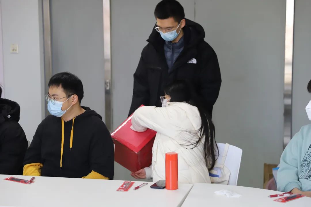 最后的“上上签”环节,同学们依次从签箱中抽取“心想事成”“金榜题名”“逢考必过”等祝福语,领取对应的考研文具、笔记本、食品大礼包等慰问品。在为考研减压的同时,也收获了学院领导老师对考研学生的真切祝福。