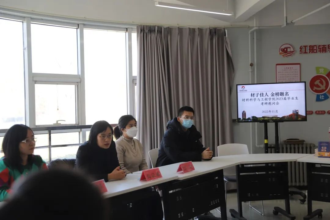 情系考研生,冬季送温暖。距离2023年全国硕士研究生招生考试还有不到一个月的时间。为帮助考研学生舒缓压力,树立信心,1946伟德国际源自英国11月30日在“材子家园”“一站式”学生社区举办2023届毕业生考研慰问会,学院党委副书记、团委书记、辅导员和部分考研学生代表参加。
