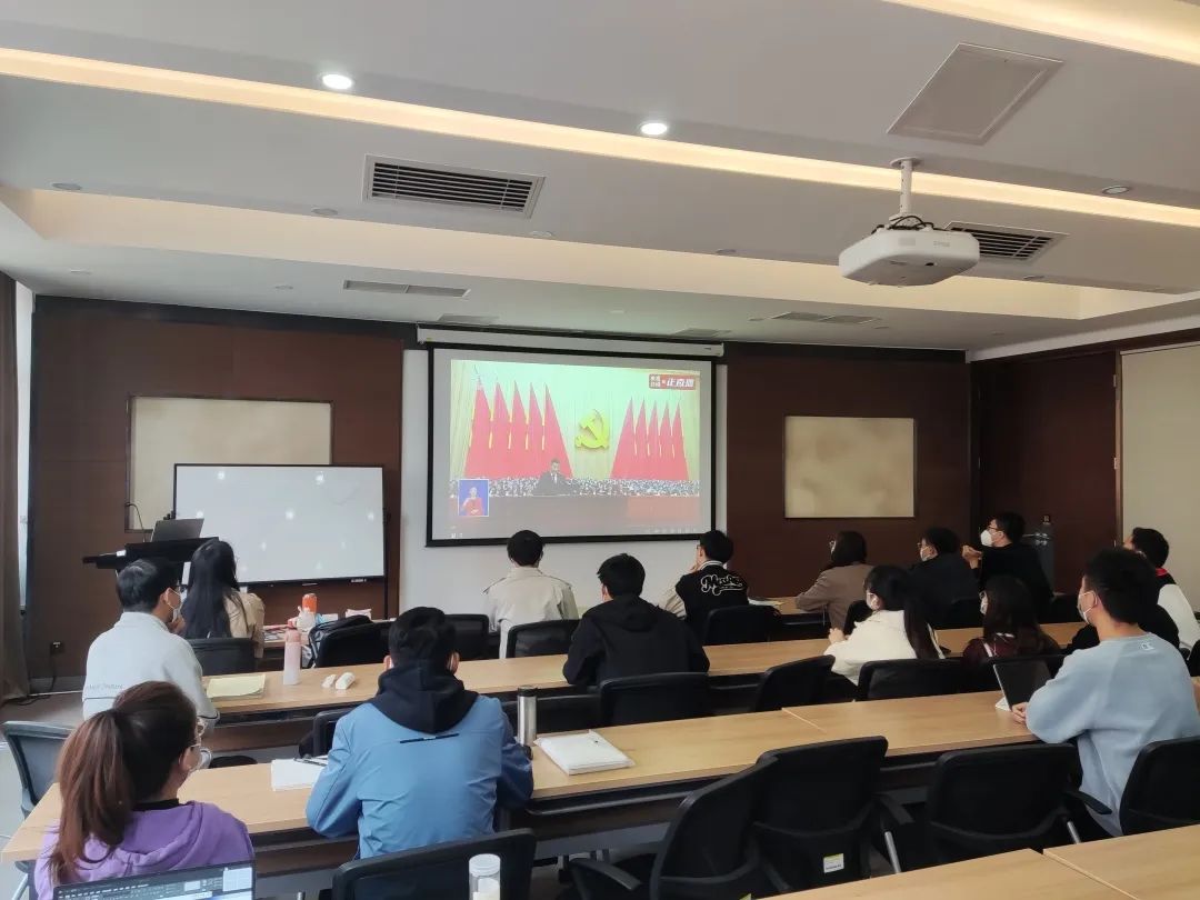 收看直播的师生代表精神饱满、全神贯注、心潮澎湃、深受鼓舞,全场秩序井然,不时爆发出阵阵掌声。学院师生一致认为,党的二十大必将是一次高举旗帜、求真务实、团结奋进的大会。
