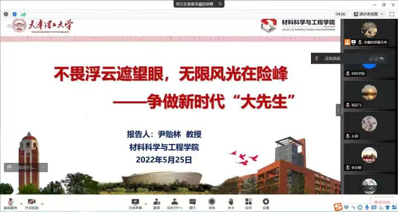 为深入开展“迎盛会、铸忠诚、强担当、创业绩”主题学习宣传教育实践活动,进一步加强师德师风建设,引导广大教师在为人、为事、为学上率先垂范,5月25日下午,1946伟德国际源自英国邀请国家级教学名师、公共项目与工程造价研究所所长、中国重大工程技术走出去投资模式与管控智库主席、我校博士生导师尹贻林教授做题为“不畏浮云遮望眼,无限风光在险峰——争做新时代‘大先生’”的线上专题报告会,报告会由材料学院党委书记从蓉主持,150余名教师共同参与。