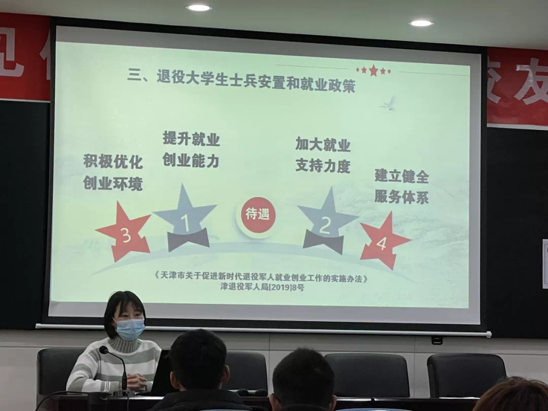宣讲会上,邀请了退伍学生、现材料学院2020级本科生陆胜兰和王鹏结合自身参军经历展开宣讲,向同学们讲解了我国兵役制度的法规规定和大学生入伍政策以及退役大学生士兵安置和就业政策,陆胜兰介绍了参军入伍的政治经济待遇和参军入伍的具体流程。最后王鹏结合当前国内外政治军事形势与军队的未来形势发展指出当代大学生参军入伍、报效祖国的历史意义和现实意义,并希望同学们能够相应号召,携笔从戎到军营建功立业,让青春之花在军营中绽放。