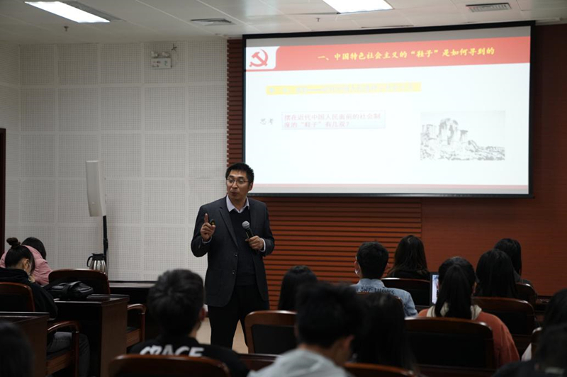 本次讲座荣幸地邀请到天津师大马克思主义学院副院长、天津市高校教学名师、天津市思想政治理论课名师工作室——李朝阳工作室负责人李朝阳教授,做题为《穿合脚“鞋”、走特色路——为什么中国特色社会主义是“好”的》专题讲座。李教授从习近平总书记所讲的“ ‘鞋子合不合脚,自己穿了才知道’。一个国家的发展道路合不合适,只有这个国家的人民才最有发言权”这一论断出发,分别从“中国特色社会主义的鞋子”是如何寻到的”、“‘鞋子’”合不合脚,自己穿了才知道、“高举伟大旗帜,推进伟大事业”三部分展开,力图用新的视角,以让师生党员坐得住、听得进、听得懂的方式,精要回顾党和人民探索中国特色社会主义的艰辛历程,结合抗疫等成就说明中国特色社会主义为什么是好的,鼓励大家坚定“四个自信”,投身伟大事业。