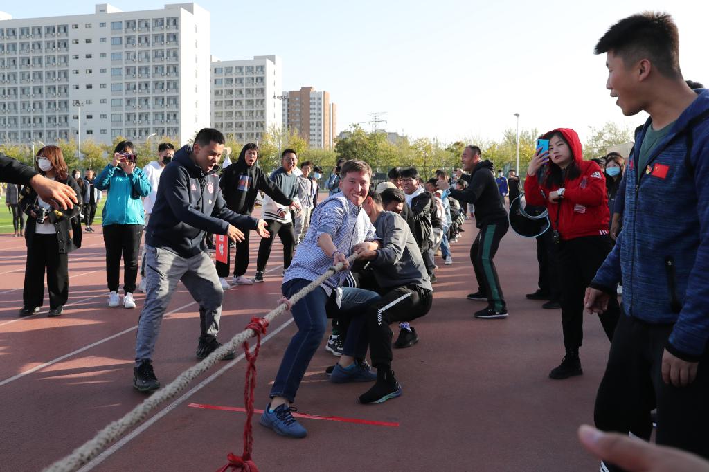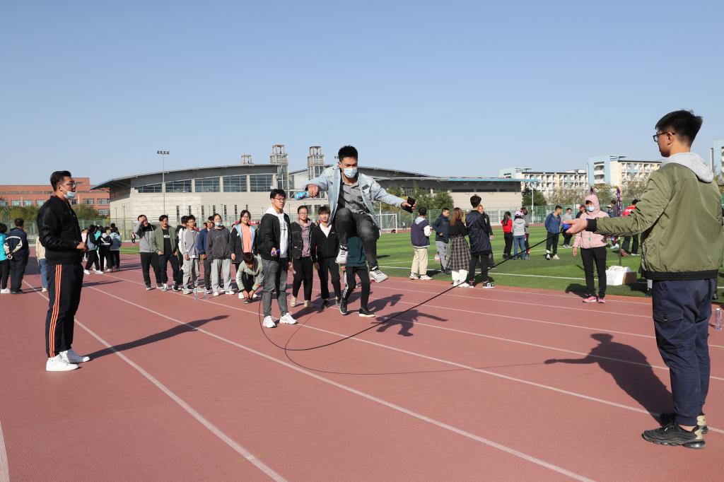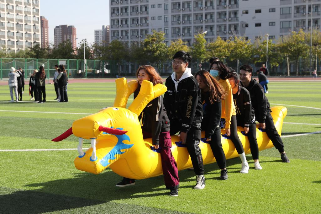 180名同学通过随机抽签组成“红旗颂”“一家亲”“中国梦”“大团结”四支队伍,参加六个项目的角逐。旱地龙舟接力赛、板鞋竞速接力赛以组队接力的形式提升队员之间的默契度和信任感。跳长绳与踢毽球接力作为技巧型项目,既锻炼了参赛者的平衡能力与身体协调性,又跳出了美感,踢出了活力。拔河与同心击鼓颠球是力量型项目,虽然男选手在力量上占优势,但女选手巾帼不让须眉,从未轻言放弃,多次在关键时刻为团队扳回一城,创造出不俗的战绩。