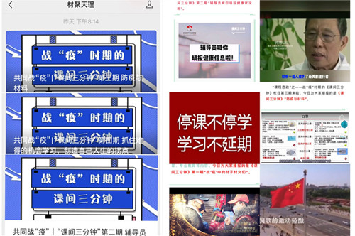 在学院党委书记马红健的带领下,学工队伍和部分专业教师联合成立课程思政党员突击队,围绕抗击疫情期间的爱国主义教育、英模人物和学生志愿者事迹宣传、学校抗疫纪律、抗疫斗争中专业知识的应用等内容,制作推出一系列“课间三分钟”小视频,创新开展新形势下的云端思政教育,受到师生欢迎。