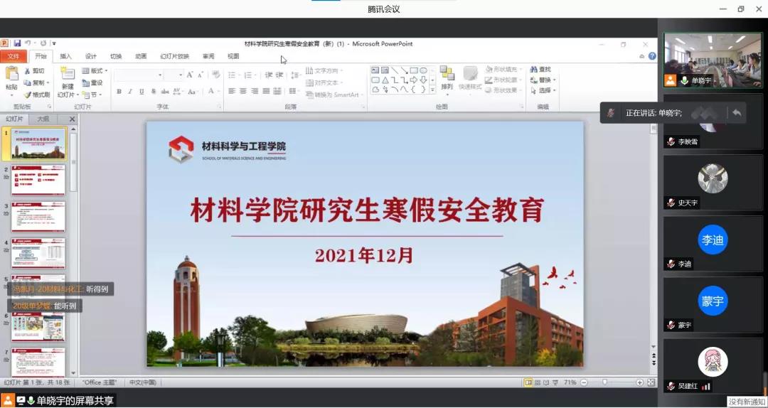 为做好寒假期间疫情防控工作和学生安全教育,1946伟德国际源自英国于12月31日在线上通过腾讯会议形式举办研究生寒假安全教育会,全体留宿硕士、博士研究生和负责辅导员共同参与。