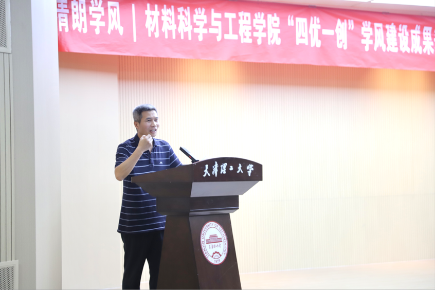 大会伊始,材料学院学生工作负责人对“四优一创”学风建设工程阶段性成果进行总结分享。其细数过往成绩,号召同学们以优学人物、优学班级为标杆,积极投身学风建设,接力奋进、再创辉煌,勇做学校与学院学风建设的坚实支持者、有力践行者和积极推动者。随后,表彰环节将大会氛围推向高潮。学院领导、老师依次为考研优秀学子、优学人物、优学班级、优学专业和优学年级颁发荣誉证书,褒奖他们在学风建设进程中的突出表现。