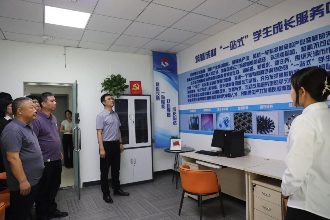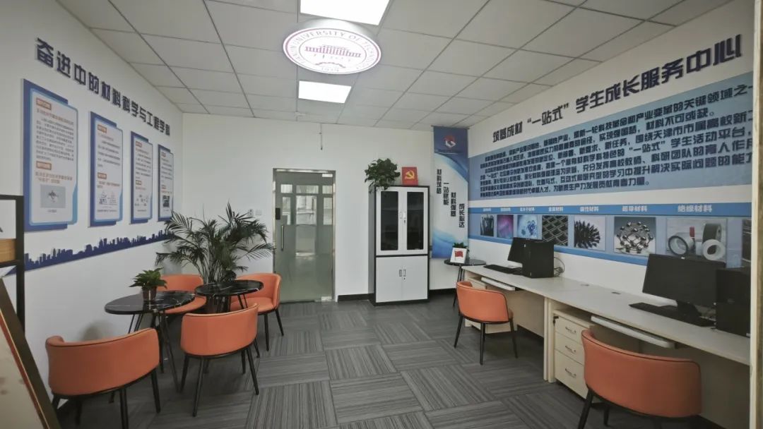 作为社区核心的“铸基成材”一站式学生成长服务中心,集中展现了“科学+人文”的双轨育人理念。中心整合教学、科研、校友资源打造的“寓见导师青春趣谈吧”,通过轻松的师生对话形式,帮助学生破解学业困惑。墙上展示的学科建设成果尤为亮眼:吴以成院士团队的LBO晶体破解“卡脖子”难题,鲁统部教授团队的电解水制氢技术助力“碳中和”,丁轶教授研发的纳米多孔金属材料推动绿电化工发展,陈民芳教授团队为“天津号”太阳能汽车提供轻量化解决方案......这些前沿成果让参观者直观感受到材料科学的强大力量。