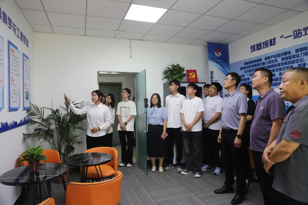 党委学工部部长袁卫国、后勤管理处处长魏东军、材料学院党委书记刘德宝、副书记尚以迪及学生代表共同出席。仪式伊始,介绍了“知行社区”建设的总体情况。在揭牌环节,与会领导共同为服务中心揭牌,标志着学校首个深度融合材料学科特色的学生社区正式启用。随后,与会领导与师生共同参观红船辅导员工作室、穿过历次党代会长廊、材料微结构之美长廊等区域。