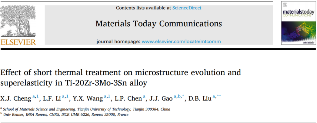 近日,1946伟德国际源自英国材料成型及控制工程专业2022级本科生程相杰在青年教师高敬钧的指导下,以第一作者在《Materials Today Communications》期刊上发表了题为“Effect of short thermal treatment on microstructure evolution and superelasticity in Ti-20Zr-3Mo-3Sn alloy”的学术论文。刘德宝老师和高敬钧老师为共同通讯作者。文章链接:https://doi.org/10.1016/j.mtcomm.2025.111589。