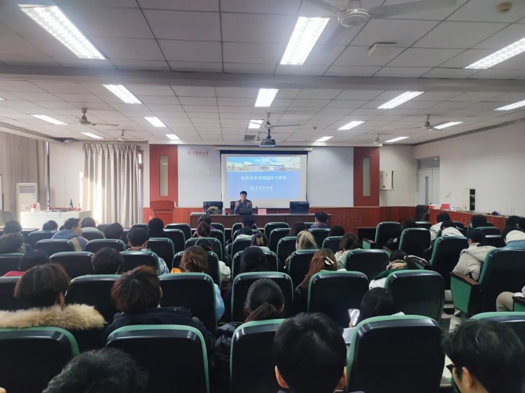 刘老师分别从消防安全、交通安全、防范电信网络诈骗等几个方面,用幽默的语言结合在高校生活中发生的真实案例,告诫同学们安全无小事,提醒同学们要将安全意识牢记于心,在日常学习生活中养成良好习惯,携手共建和谐安全的平安校园,度过美好的大学生活。