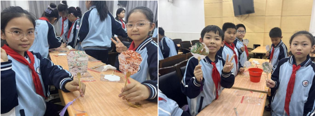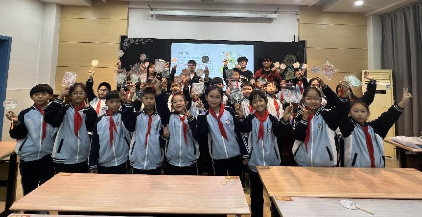 课堂上,新能源本科生党支部成员首先介绍了漆扇的来源和历史,并通过精美的图片和视频生动地展示了各种漆扇的样式及其承载的文化内涵,激发了小学生们对制作漆扇的兴趣和热情。随后,在大学生的指导和带领下,小学生们拿出漆扇,通过将不同的颜料混合搭配,动手制作属于自己的精美漆扇,亲身感受漆扇艺术的魅力。
