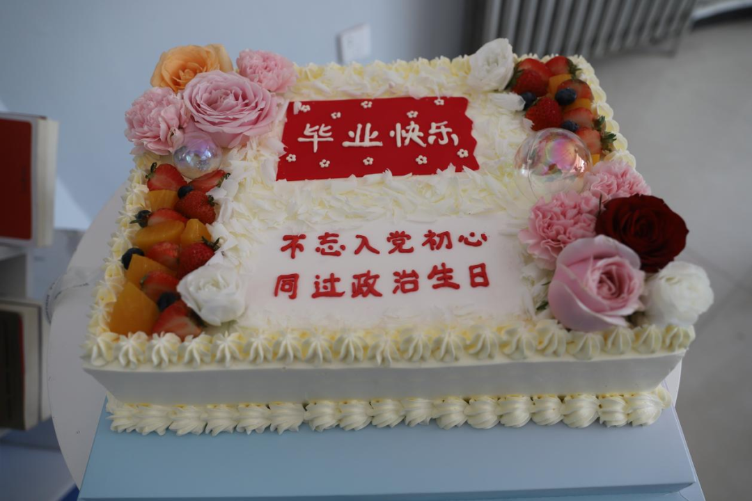 活动中,与会领导也纷纷为毕业生送上殷切嘱托,分别从思想引领、服务保障、学科发展与人生方向角度提出期望。最后,师生共切“初心”蛋糕的温馨环节将氛围推向高潮,这面蛋糕既是成长的见证,更是使命的传递,希望毕业生党员们让初心如蛋糕般绵长,让使命如烛光般明亮!