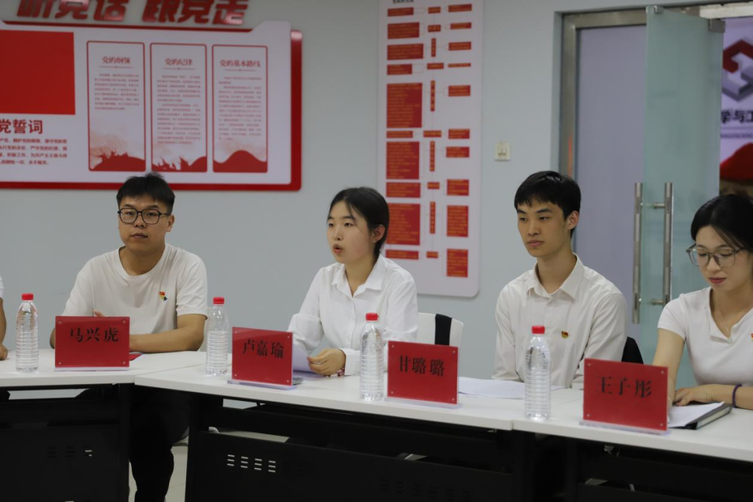 保研中科院的毕业生党员卢嘉瑜作为学生代表发言,“向党组织靠拢是我大学生涯乃至人生的转折点。我由衷感谢入党带给我的蜕变,也感谢各位同志们的关心与帮助。未来,我将继续脚踏实地,潜心科研,做一名合格的党员!”