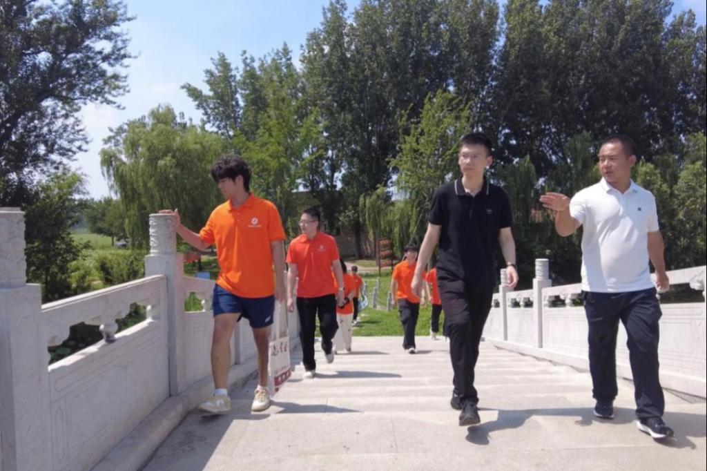 实践团走访李大人庄村西侧的青龙湖占地约7500平方米,绕湖建设有1000米的环形观光步道。为了观景方便,湖上建造了状元桥和鸿运桥,可供游客许愿,寄托美好愿景。