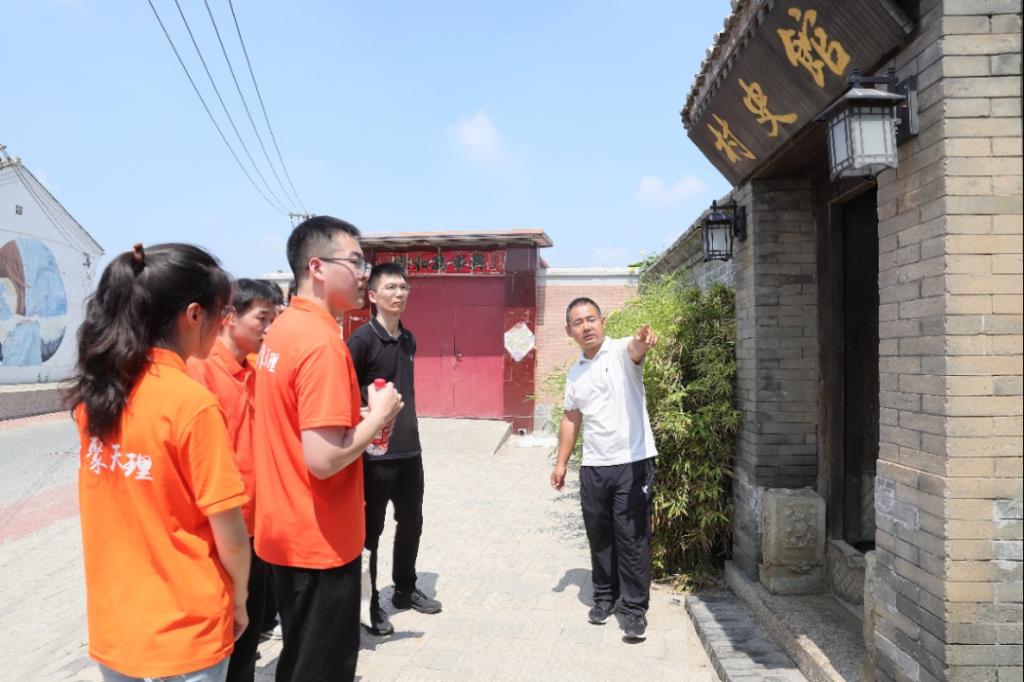 实践团第一站来到了李大人庄的村史馆,感悟村庄的历史文化。古村落通过保护和利用历史文化遗产,结合现代设计,形成了以文化体验和休闲为核心的旅游发展方向,古民居被巧妙地打造成村史馆,生动展示了李大人庄村的历史演变和红色文化。